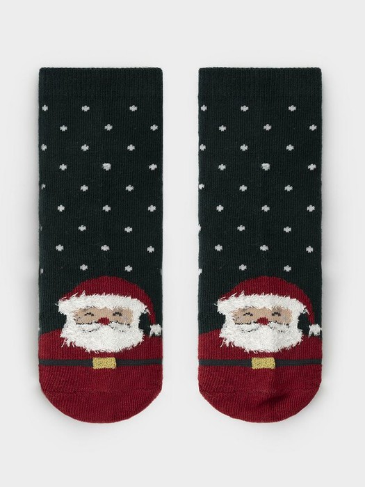 Носки с формованной пяткой и эластичной резинкой по краю. Украшены рисунком. Отлично подойдут для создания праздничных образов или как дополнение к подарку на Новый год и Рождество. Изделие сохраняет форму и стойкий цвет после многочисленных стирок.