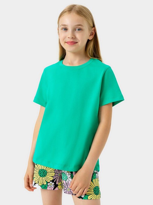 Футболка из трикотажного кулирного полотна. Силуэт прямой. Перед и спинка без швов и рельефов. Рукава короткие. Горловина круглая, с обтачкой из рибаны. Стильная футболка с ярким дизайном!