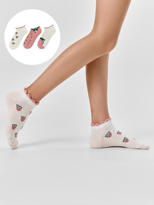 рис.3203 Мультипак из укороченных детских носков с рисунком в виде клубники. Составляющие: 406A-3204, 406A-3205, 406A-3206
