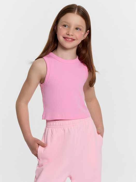 Топ для девочек прилегающего силуэта. Горловина круглая. Проймы и горловина окантованы бейкой из основного полотна. Низ изделия обработан швом в подгибку.