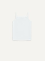 Хлопковое бюстье прилегающего силуэта для девочек. Выполнено из легкой и приятной к телу трикотажной рибаны. Вырез горловины и проймы окантованы эластичной тесьмой. На бретелях есть кольца-регуляторы. По нижнему краю бюстье расположена удобная и стильная жаккардовая тесьма. Идеально!