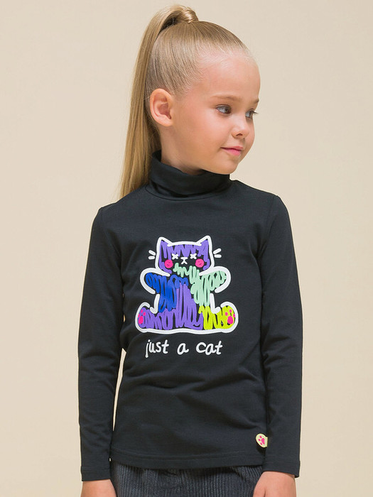Водолазка детская для девочки. Лонгслив модного свободного силуэта подарит ребёнку комфорт и свободу движений. Водолазка с длинным рукавом дополнена воротником-стойкой, который защищает шею от холода и ветра — нет необходимости дополнительно надевать шарф. Модель неприхотлива в уходе. В составе ткани пребладает высококачественный хлопок — джемпер мягкий и отлично пропускает воздух, давая коже ребёнка дышать. Эластан помогает изделию сохранить прекрасную форму надолго. Водолазка с принтом по переду. Принт эластичный и стойкий, великолепно переносит многочисленные стирки. На принте изображён котик, надпись переводится «просто кот». В шве левого рукава вшита декоративная деталь - лапка котенка. Порадует любую девочку. Джемпер с воротником выполнен в классическом чёрном цвете, его легко сочетать с любыми брюками, джинсами, легинсами, юбками. Размерный ряд: 2 (92); 3 (98); 4 (104); 5 (110); 6 (116), 7 (122); 8 (128); 9 (134); 10 (140); 11 (146). Водолазка с горлом станет отличным дополнением гардероба для маленьких девочек дошкольного и младшего школьного возраста, а также девочек-подростков. Его можно носить в детский сад, на прогулки, отдых, а также дома. Водолазка подходит для круглогодичного применения: летом, осенью, зимой, весной и демисезон. Отличный подарок дочери, внучке или сестре на Новый год и любой другой праздник.