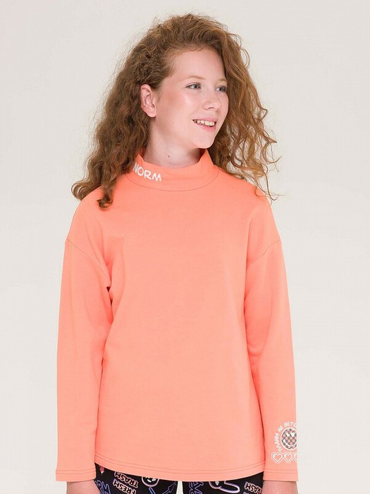 Водолазка из футера с начесом для девочки. Ткань мягкая, с большим содержанием хлопка, приятная на ощупь и простая в уходе. Мягкое спущенное плечо и прямой силуэт. Воротник-стойка из основной ткани. Близкий детям и подросткам принт на воротнике и рукаве – надпись NORM, прикольные иконки и смайлы. Тепло, мягко, уютно – водолазка подходит на каждый день для создания стильного образа. Комбинируется с жилетом, толстовкой, анораком.