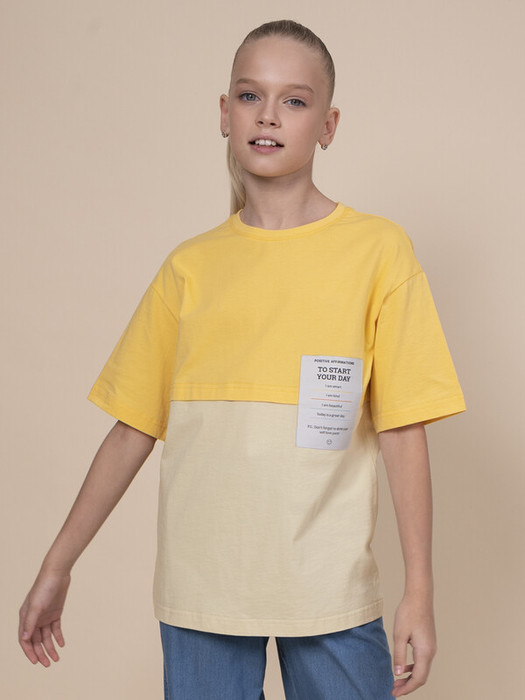 Футболка оверсайз для девочки. 100% хлопок в составе – ткань мягкая, дышащая, приятная на ощупь. Жаккардовая нашивка с вытканным текстом – яркий визуальный акцент и изюминка модели, сохраняет декоративность при частых стирках. Имитация двухслойности – тренд сезона. Верх модели имитирует кроп-топ. Футболка отлично подходит для создания стильного образа весной и летом в паре с джоггерами или шортами. Идеальна для активного детства – на каждый день, для учебы и занятия спортом.