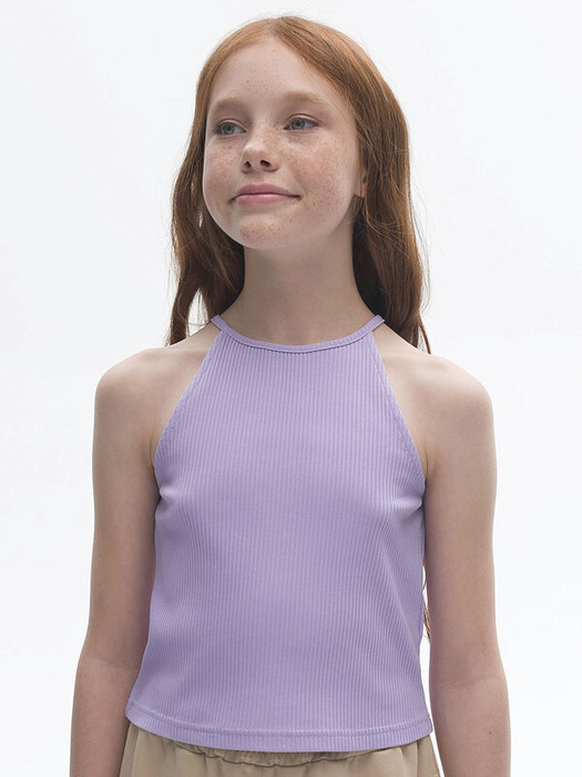 Укороченный топ-халтер из модной ткани в рубчик для девочки. В составе преобладают хлопок и вискоза – модель мягкая, приятная на ощупь и комфортная для кожи ребёнка. Эластан помогает изделию не терять форму. По горловине завязка, с её помощью можно регулировать высоту горловины и посадку топа. Топ-халтер - мастхэв этого лета. Модель подчёркивают красоту открытых плеч, рук и спины. Вырез под горло даёт дополнительный акцент на плечи и удлиняет шею. Для самых модных девочек. Сочетается с любыми объемными низами.