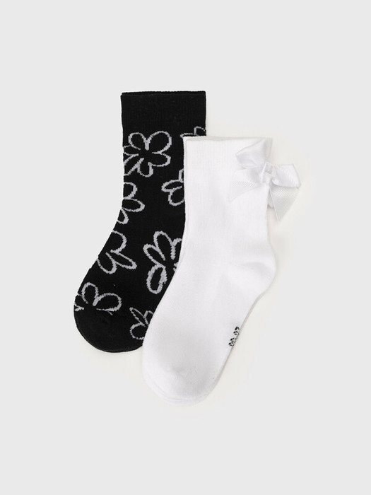 Набор детских носков для девочки. Носки из высококачественного хлопка с добавлением нейлона и эластана. Комфортная модель с усиленным мыском и пяткой. Мягкая широкая резинка хорошо фиксируется по ноге ребенка. 2 пары в сете. Декор - банты.