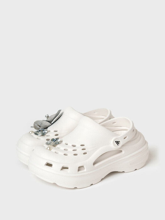 Сабо женские на высокой подошве. Модель выполнена из облегченного и прочного ЭВА. Материал хорошо моется. Форма модели учитывает эргономику стопы. Оригинальность модели придают большие съемные цветы-джибицы. Модель имеет перекидной ремешок фиксации ноги.