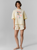 Набор одежды для дома и отдыха из хлопкового трикотажного полотна. Футболка прямого кроя, короткий втачной рукав, округлая горловина с обтачкой. Спереди принт. Короткие шорты свободного кроя, цельнокроеный пояс на внутренней резинке. Боковые разрезы.