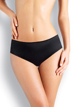 бикини комфортной посадки из однотонного полотна. По поясу обработаны резинкой с фестоном, по ножкам расположена кружевная тесьма. Спереди по центру - небольшой атласный бант.