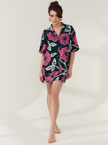 Халат сшит из мягкой вискозы, которая дарит коже приятные ощущения. Халат мягкий и гладкий на ощупь. Его удобно носить как поверх пижамы, так и на голое тело. Рукава украшены кружевом цвета шампанского. Вставки мягкие на ощупь и не колются. Съемный пояс выполнен из той же вискозы, продет в шлевки по бокам и завязывается спереди узлом или бантом.