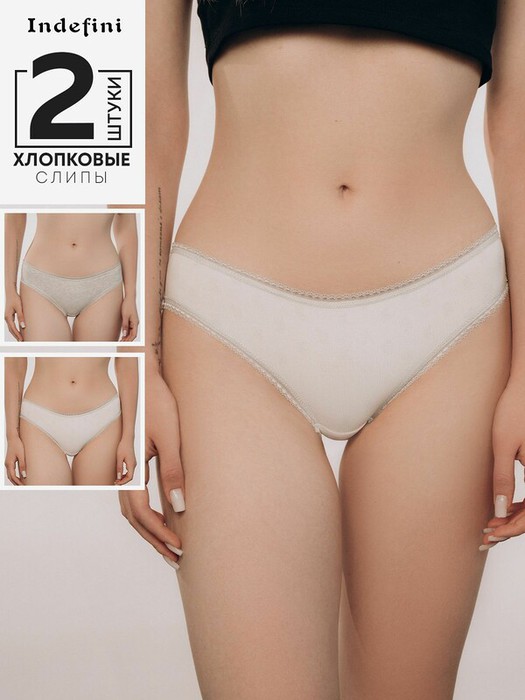 Набор включает в себя двое женских трусов-слипов, изготовленных из хлопка.