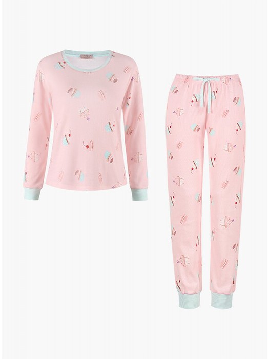 Пижама женская 3265TCC бренда Indefini, составленная из мягкого хлопка и вискозы, включает кофту и брюки.
