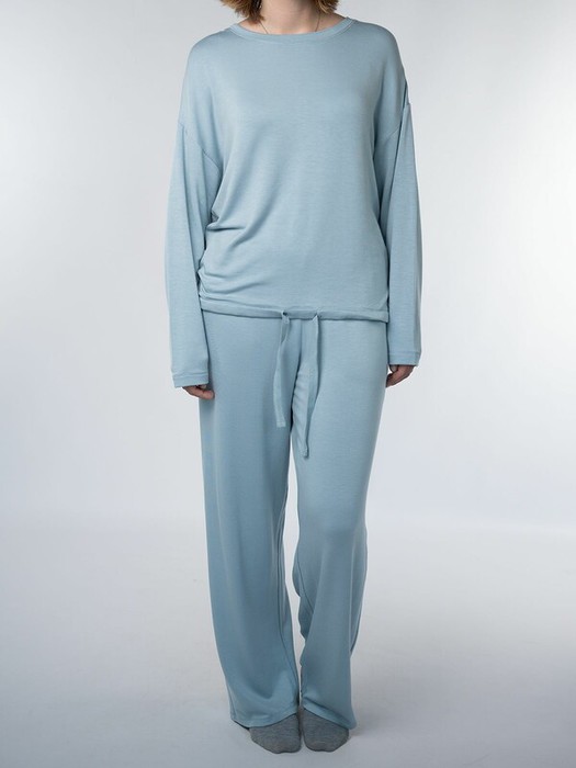 Женская пижама выполнена в нежном голубом цвете и изготовлена из мягкого материала — вискозы с добавлением эластана (95% вискозы, 5% эластана).