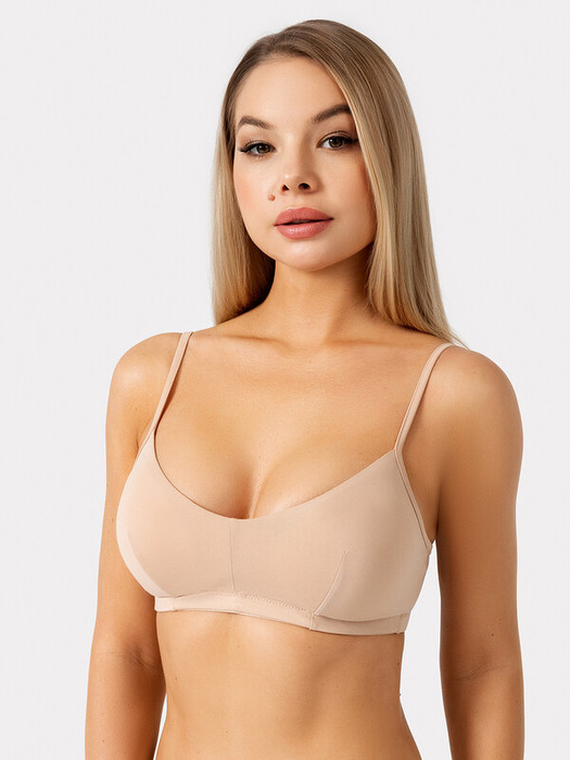 Повседневное бюстье из хлопкового полотна – гипоаллергенного и приятного на ощупь. Мягкие чашки без косточек дарят максимальный комфорт. Бретели тонкие, регулируются по длине.