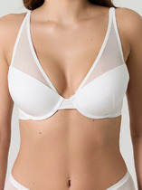 Чашки с особыми конструктивными швами точно повторяют контуры груди, создавая соблазнительный силуэт. Боковые части усилены пластинами для лучшей фиксации, а мягкая подкладка в области ластовицы обеспечивает дополнительный комфорт. Все срезы обработаны эластичной тесьмой, которая обеспечивает идеальное прилегание без давления.