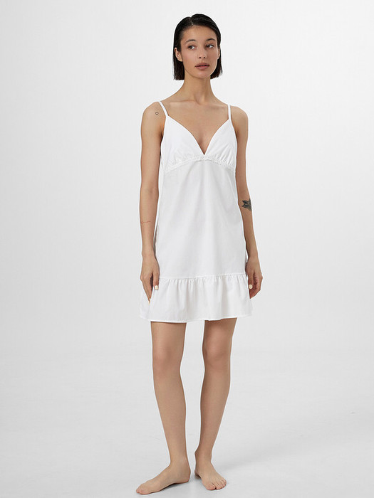 Укороченный сарафан А-силуэта с женственным акцентом идеально сочетает в себе удобство для сна и изящные романтичные детали.