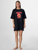 Женская туника черного цвета с принтом станет любимым предметом гардероба для дома. Она выполнена из мягкого и дышащего трикотажа на основе хлопка, который обеспечивает комфорт и приятные тактильные ощущения.