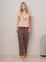 Пижама из трикотажной вискозы состоит из футболки и шорт. Укороченная футболка широкого покроя, с короткими рукавами.Короткие свободные шорты на широкой резинке.