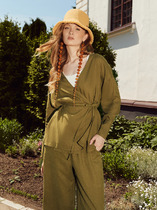 Женский жакет свободного кроя — сочетание комфорта и элегантности. Длинные рукава с широкими манжетами добавляют выразительности, а спущенное плечо создает расслабленный силуэт. Застежка на запах с завязками подчеркивает женственность, а V-образный вырез делает образ утонченным. Материалы — рами и лиоцелл — обеспечивают легкость, воздухопроницаемость и приятные тактильные ощущения. Они устойчивы к износу, хорошо держат форму и дарят комфорт в течение всего дня. Дополните этот жакет подходящими брюками из коллекции Mark Formelle, чтобы создать гармоничный и стильный комплект.