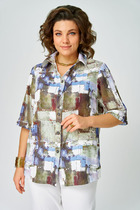 21.04 Vilatte Блузка из вискозы с лиоцеллом D29.263 синий-белый