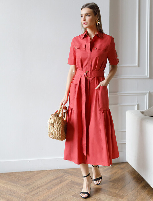 Совместные закупки Екатеринбург Женская одежда Платья — 27.03 Vilatte Платье из легкого хлопкового поплина D22.206 темно-красный
