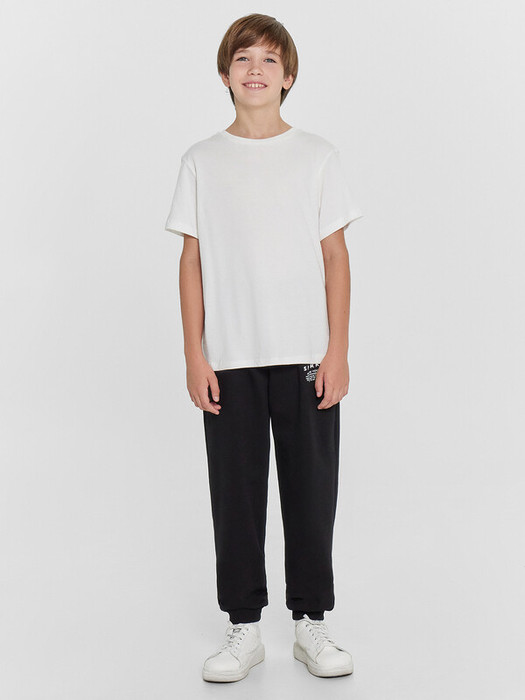Модные брюки-джоггеры прямого силуэта для мальчиков. Выполнены из трикотажного футера с теплым и нежным подчесом. Пояс с эластичной тесьмой внутри и регулировочным шнуром-завязкой. Штанины завершаются манжетами. Есть удобные боковые карманы.