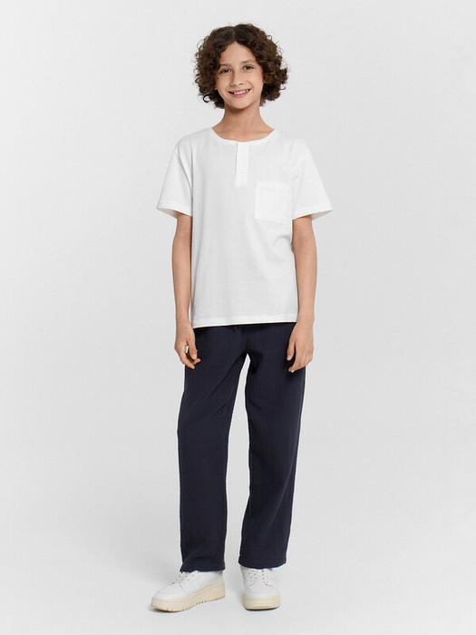 Брюки для мальчиков из ткани (муслин). Брюки длинные с классической линией талии. Силуэт прямой, брюки заужены немного к низу. Пояс цельнокроеный. Верхний срез брюк