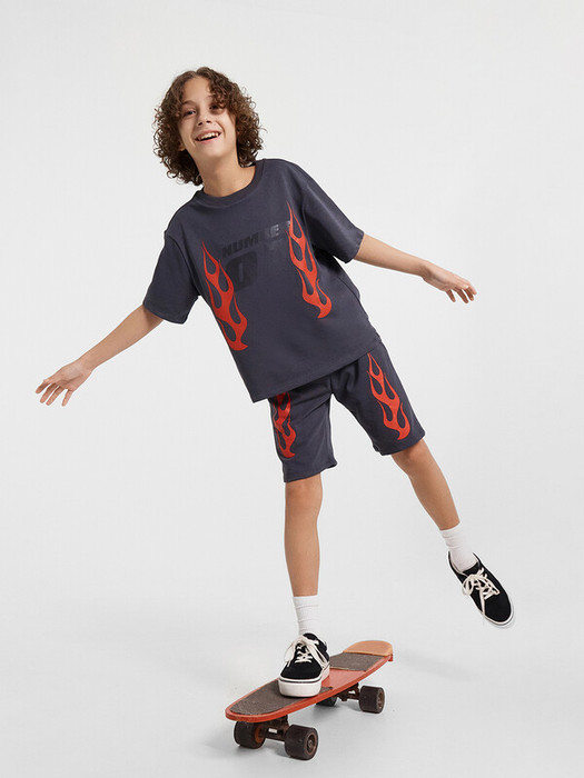 Стильный комплект для мальчиков. Изготовлен из трикотажного футера. Футболка свободного силуэта, длиной до середины бедер, с короткими рукавами и круглой горловиной. Шорты длиной до колена, с эластичной резиной в поясе  и регулировочным шнурком. Отличный выбор!