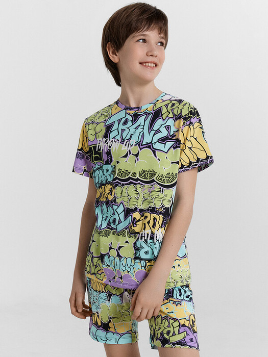 Пижама для мальчиков — идеальное сочетание комфорта и практичности для сна и отдыха! Комплект включает свободную футболку с круглой горловиной и короткими рукавами, обеспечивающую удобную посадку и комфорт в течение ночи. Шорты длиной до колен дополнены эластичной тесьмой в поясе, что позволяет регулировать посадку и гарантирует свободу движений. Изделие выполнено из хлопковой кулирки — мягкого и воздухопроницаемого материала, который приятно прилегает к коже и дарит ощущение легкости. Такая ткань обеспечивает уют и комфорт в любую погоду. Этот комплект станет отличным выбором для спокойного сна и расслабленного домашнего отдыха, позволяя ребёнку чувствовать себя комфортно и свободно. Универсальная и удобная модель для повседневного гардероба!