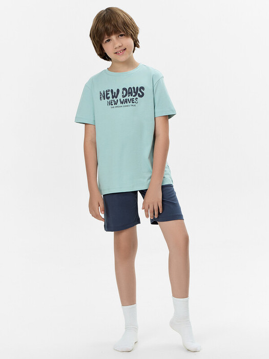 Пижама для мальчиков — идеальное сочетание комфорта и практичности для сна и отдыха! Комплект включает свободную футболку с круглой горловиной и короткими рукавами, обеспечивающую удобную посадку и комфорт в течение ночи. Шорты длиной до колен дополнены эластичной тесьмой в поясе, что позволяет регулировать посадку и гарантирует свободу движений. Изделие выполнено из хлопковой кулирки — мягкого и воздухопроницаемого материала, который приятно прилегает к коже и дарит ощущение легкости. Такая ткань обеспечивает уют и комфорт в любую погоду. Этот комплект станет отличным выбором для спокойного сна и расслабленного домашнего отдыха, позволяя ребёнку чувствовать себя комфортно и свободно. Универсальная и удобная модель для повседневного гардероба!