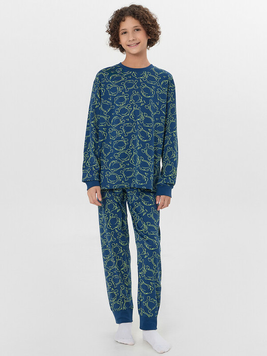 Костюм домашний для мальчиков с принтом создан для комфорта и свободы движений. Мягкая ткань, состоящая из хлопка обеспечивает приятные тактильные ощущения и хорошо пропускает воздух, сохраняя оптимальную температуру тела. Круглая горловина с отделкой из рибаны мягко облегает шею.