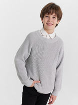Джемпер свободного силуэта. Горловина круглой формы, обтачка горловины из рибаны. Плечо спущено, пройма углублена. Рукав втачной, длинный. По низу рукава отрезные манжеты из рибаны.