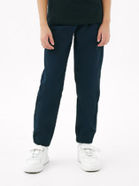 Комплект детских брюк-джоггеров для мальчика. Набор из двух джоггеров выполнен из хлопкового трикотажа джерси. Модель прямого кроя со средней посадкой на талии. Пояс выполнен на резинке, дополнительно регулируется шнурком. На бедрах расположены удобные накладные карманы. Декоративные нашивки со светоотражающим эффектом. В нижней части брючин предусмотрены эластичные трикотажные манжеты для лучшей фиксации.