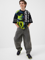 Это подростковые джинсы свободного покроя с прямыми и широкими штанинами для мальчика подростка. Выполнены из плотного хлопкового денима. Джинсы застёгиваются на молнию и болт, внутри пояса есть эластичная лента с пуговицей для регулировки. Боковые и задние карманы. На заднем кармане размещён декоративный шеврон с белым принтом.