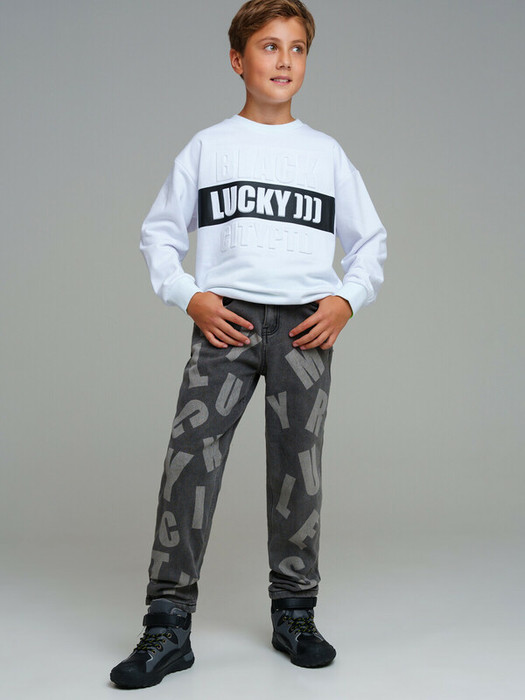 30.03 PlayToday Брюки текстильные джинсовые утепленные флисом для мальчиков 324