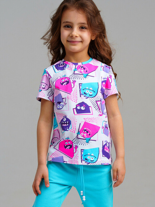 Футболка детская для девочки. Футболка с высоким содержанием хлопка 95%. Благодаря наличию эластана в составе ткани изделие проще в уходе и держит форму. Модель выполнена из качественного и приятного на ощупь трикотажа.