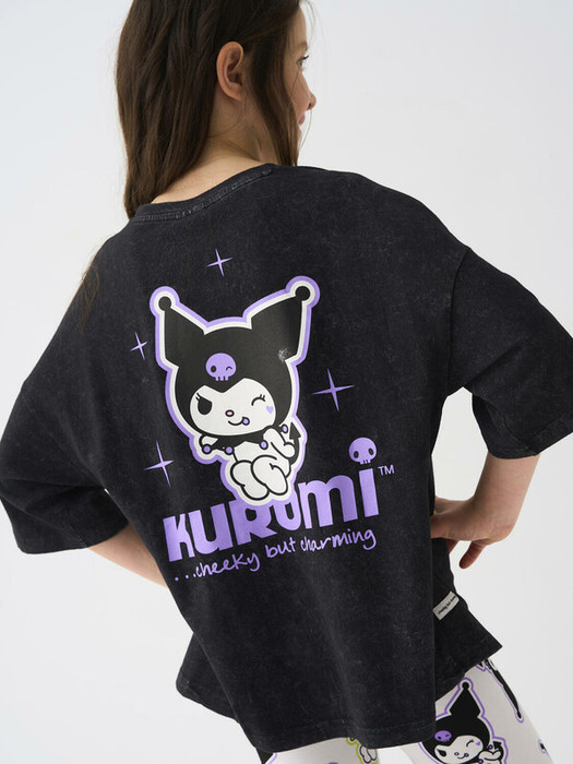 Футболка оверсайз для девочки подростка. Модель выполнена из меланжевого хлопкового трикотажа джерси. На груди и спинке расположен крупный принт с любимым персонажем Куроми.