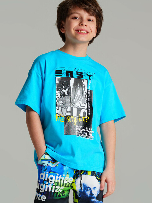 Футболка из качественного и приятного на ощупь трикотажа джерси. Высокое содержание хлопка 95%. Благодаря наличию эластана в составе ткани изделие проще в уходе и держит форму. Oversize fit.