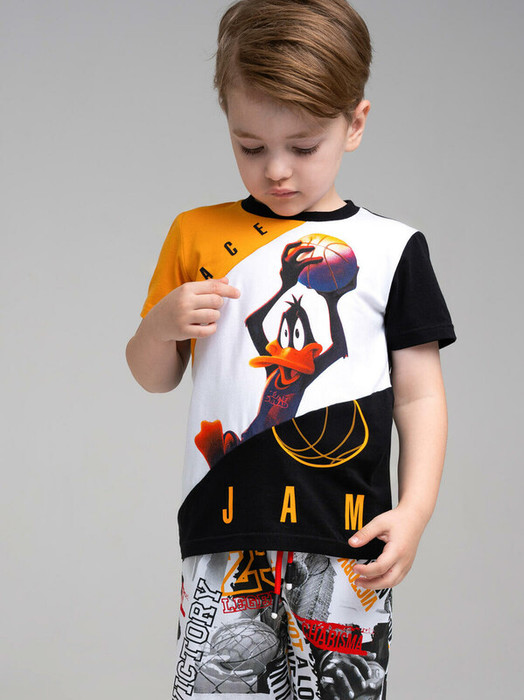 Футболка детская для мальчика. Футболка из качественного и приятного на ощупь трикотажа джерси с высоким содержанием хлопка 95%. Благодаря наличию эластана в составе ткани изделие проще в уходе и держит форму. Модель выполнена из качественного и приятного на ощупь трикотажа.