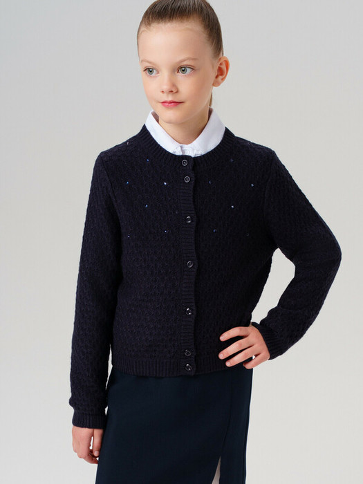 Этот модный кардиган для школы станет универсальным элементом гардероба юной модницы. Модель выполнена в базовом силуэте – классический крой обеспечивает комфорт в движении и современный внешний вид.
