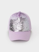 Детская бейсболка для девочки. Классическая форма с изогнутым козырьком. На передней части вышита фиолетовая бабочка. Козырёк выполнен из материала с блестками, что придаёт изделию праздничный вид. Сзади — регулируемая застёжка на липучке. Есть вентиляционные люверсы.