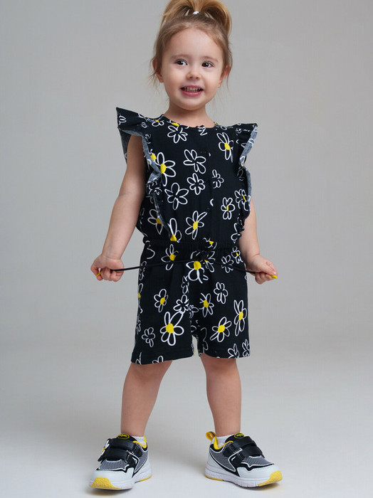 Комбинезон детский для девочки из качественного и приятного на ощупь трикотажа джерси. Застежка на кнопки. Пояс на резинке со шнурком. Высокое содержание хлопка. Благодаря наличию эластана в составе ткани изделие держит форму и меньше мнется. Модель выполнена из качественного и приятного на ощупь трикотажа.