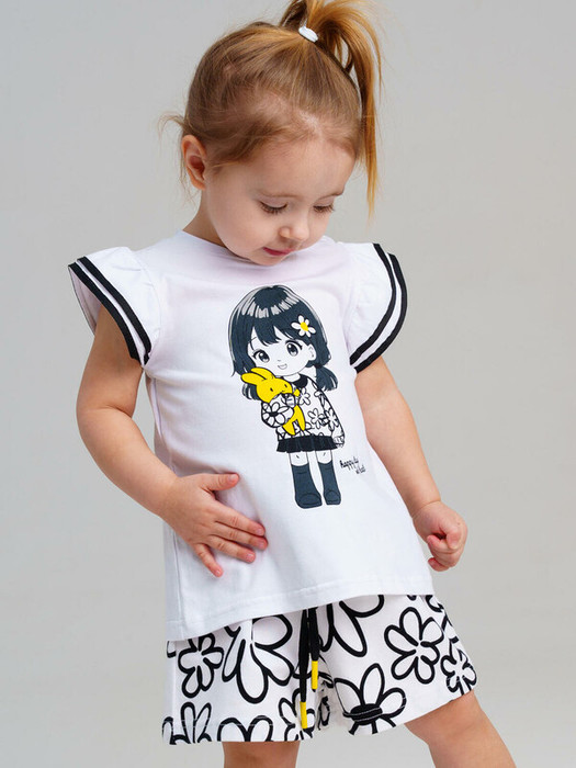 Костюм детский для девочки.Футболка и шорты классической посадки. Костюм из качественного и приятного на ощупь трикотажа джерси с высоким содержанием хлопка 95%. Благодаря наличию эластана в составе ткани изделие проще в уходе и держит форму. Футболка с застежкой на кнопки. Шорты на резинке со шнурком. Модель выполнена из качественного и приятного на ощупь трикотажа.