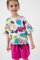 Детский костюм для девочки. Состоит из футболки с коротким рукавом и шорт. Выполнен из хлопкового трикотажа. Футболка свободного кроя, с красочным принтом с любимыми мультяшными персонажами "101 далматинец". Декоративные сборки по рукавам. Шорты свободные, хорошо сидят на талии благодаря эластичному поясу и регулирующему шнурку. Удобные боковые карманы.