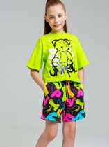 Легкий комплект для девочки подростка. Выполнен из мягкого хлопкового трикотажа джерси, состоящий из укороченной футболки и юбки-шорт. Футболка свободного кроя с ярким принтом. Пышная юбка на резинке с воланами, внутри имеет удобные шорты, что делает модель практичной для активного отдыха.