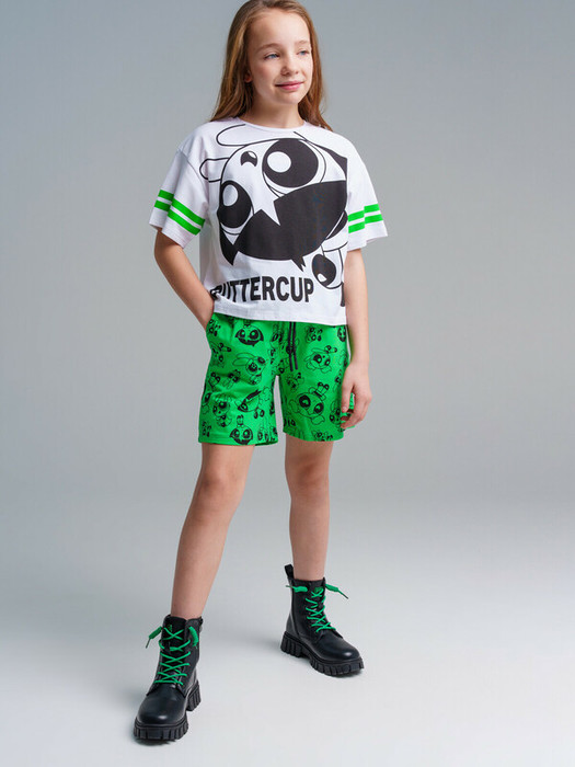Комплект: футболка, шорты из качественного и приятного на ощупь трикотажа джерси. Высокое содержание хлопка 95%. Благодаря наличию эластана в составе ткани изделие проще в уходе и держит форму. Футболка прямого кроя. Шорты имеют эластичный пояс со шнурком.