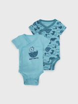 Комплект из двух мягких ползунков для новорожденного мальчика. Обе модели с закрытыми ножками и удобным широким поясом на резинке. Один из вариантов украшен ярким принтом с весёлыми собачками на белом фоне, второй — выполнен в голубом цвете с тем же принтом. На поясе спереди есть декоративная нашивка с логотипом. Материал — приятный к телу, 100 % хлопковой трикотаж интерлок.