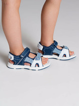 Сандалии из дышащего текстиля. Ремень с липучкой позволяет легко обувать сандалии. Подкладка выполнена из 100% хлопка. Стелька выполнена из натуральной кожи и имеет анатомический элемент для поддержания свода стопы. Подошва из ПВХ легкая  и гибкая.