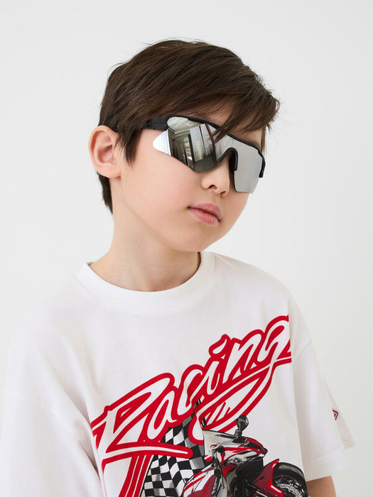 Солнцезащитные очки футуристической формы в стиле Y3K для мальчика подростка. Гибкая пластиковая конструкция мягко облегает лицо, не сдавливая его, а регулируемые подушечки для носа и кончики виска обеспечивают плотную посадку даже во время самых активных занятий ребенка. Солнцезащитные очки с фильтром Cat3.  Серебристые зеркальные линзы имеют защиту UV400, которая отражает 100% ультрафиолетовых лучей с длиной волны менее 400 нанометров, эффективно блокируя все ультрафиолетовые лучи при солнечном свете. Небьющиеся акриловые линзы на 100% блокируют вредные UVA/UVB лучи. Ширина оправы - 135 мм, длина дужки - 105 мм. Обхват головы 50-52 см. Такие очки эффективны для защиты глаз в тропиках, у моря и в горах. Очки транспортируются в картонной коробке. В комплект входит фирменный текстильный чехол из микрофибры, с помощью которого легко ухаживать за изделием. Очки транспортируются в картонной коробке.