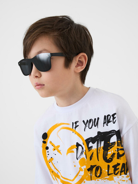 Солнцезащитные очки для мальчика-подростка. Солнцезащитные очки с фильтром Cat3 и поляризацией. Тёмные линзы имеют защиту UV400, которая отражает 100% ультрафиолетовых лучей с длиной волны менее 400 нанометров, эффективно блокируя все ультрафиолетовые лучи при солнечном свете. Ширина оправы - 140 мм, длина дужек - 145 мм. Обхват головы 54-56 см. Небьющиеся линзы из триацетата целлюлозы устойчивы к царапинам. Поляризационные фильтры на очках поглощают блики, отражаемые от горизонтальных поверхностей, что помогает повысить четкость зрения и избежать напряжения глаз ребенка. Только при просмотре в линзах с поляризацией видны воздушные шарики в виде сердечек на тест-картинке, вложенной в чехол. Такие очки эффективны для защиты глаз в тропиках, у моря и в горах. В комплекте: текстильный чехол, тест-картинка со слониками. Текстильный чехол выполнен из микрофибры и им легко ухаживать за изделием. Очки транспортируются в картонной коробке.